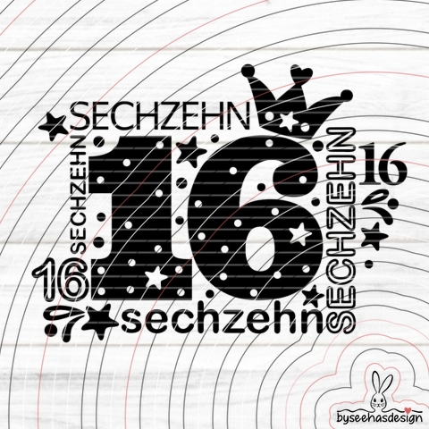 Zahl Sechzehn Plotterdatei SVG DXF