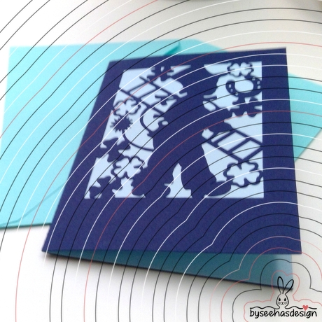 Das Motiv kann auch in fertige, gekaufte Karten eingepasst werden.