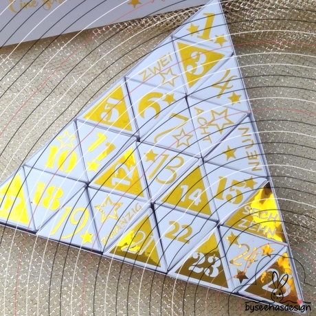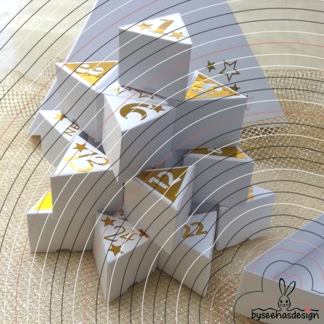 Mit dieser Plotterdatei kannst Du Deinen eigenen Adventskalender aus Papier und Folien gestalten.