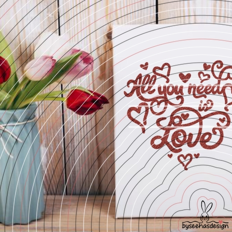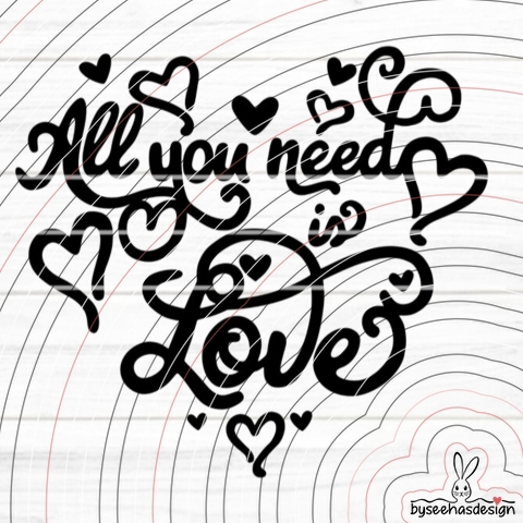 Die Plotterdatei All you need is Love kann einfarbig mit Folien verarbeitet werden.